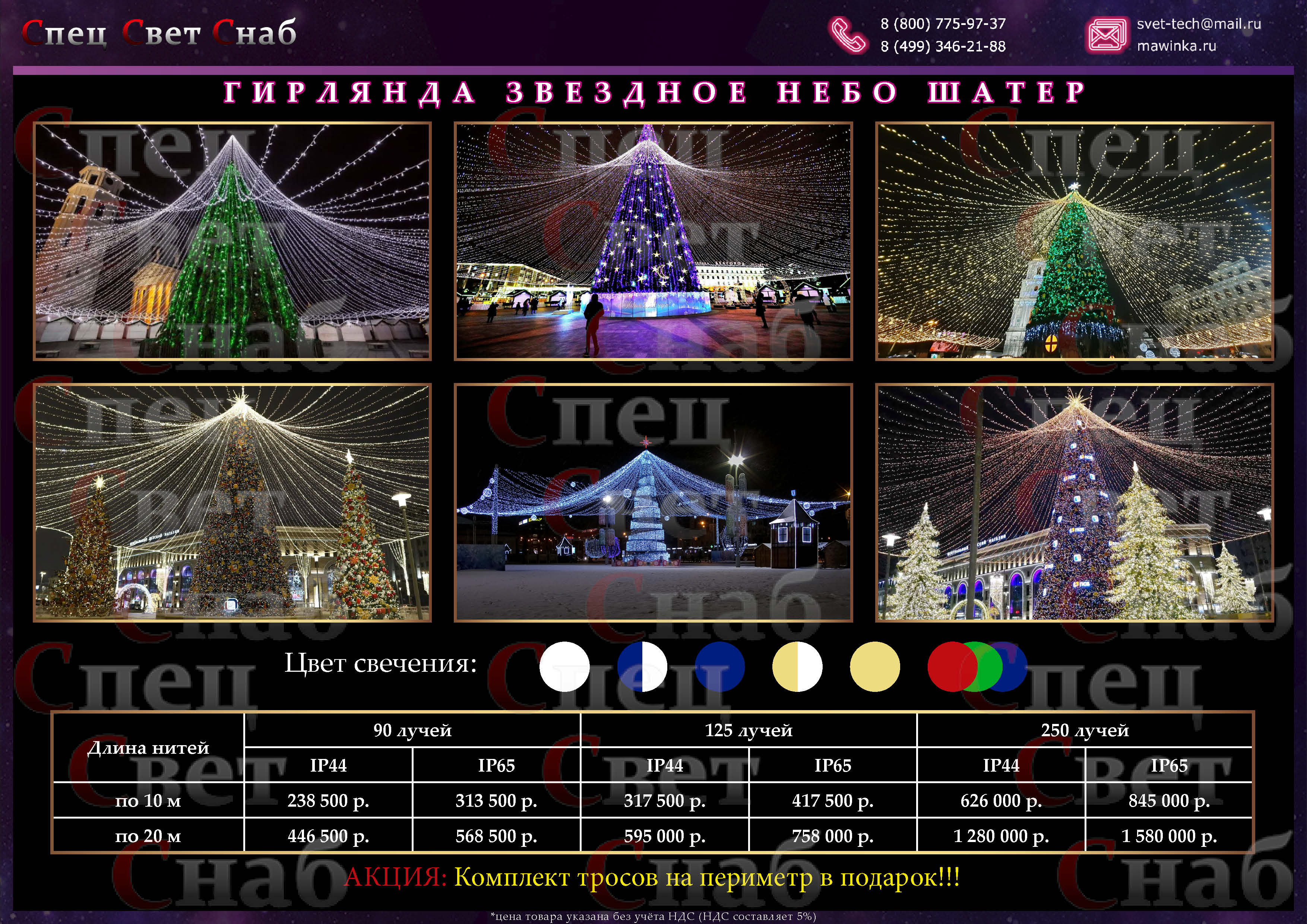 Изготовление гирлянд Звездное небо для уличной елки под ваш размер