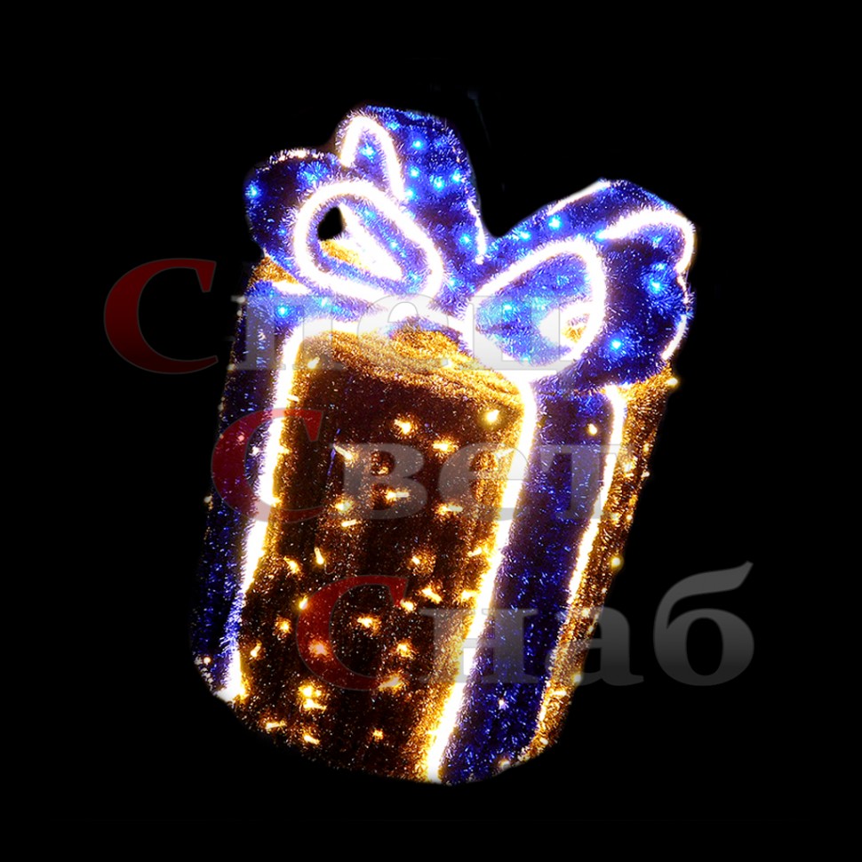 Новогоднее украшение города. Светодиодная фигура "Золотой подарок" 1 х 0,7 х 0,7